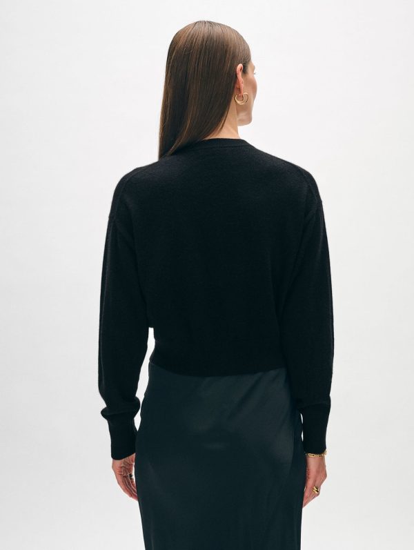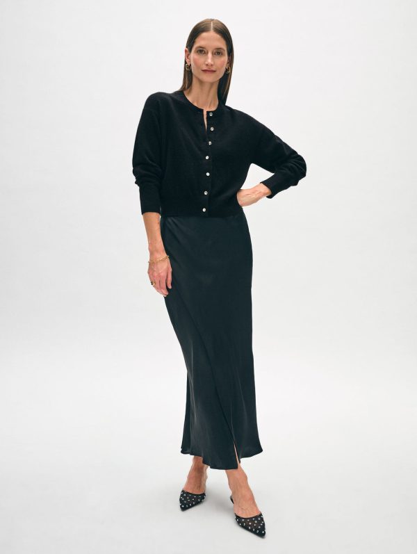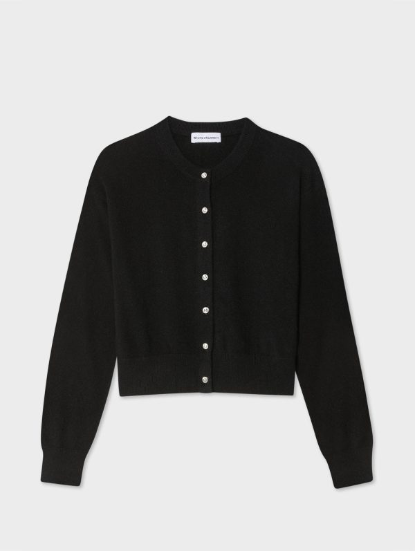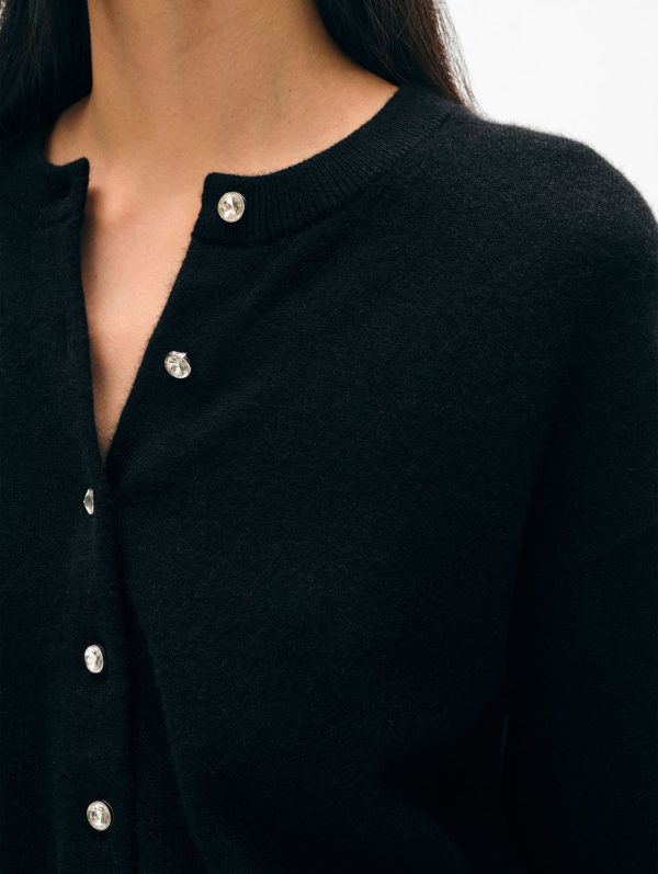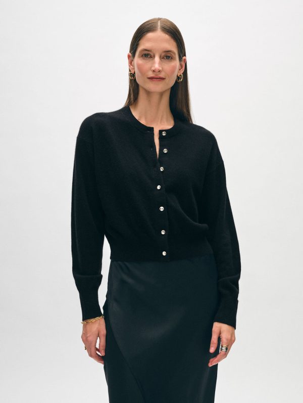 For more dressed-up affairs, our crewneck cardigan features a head-turning rhinestone button design. Made of soft, classic-weight cashmere responsibly sourced from Mongolia, this cardigan offers a straight fit that hits at the high hip. It’s a must-have piece to button up with tailored trousers or layer over a party dress, making it perfect for the holiday season and beyond.