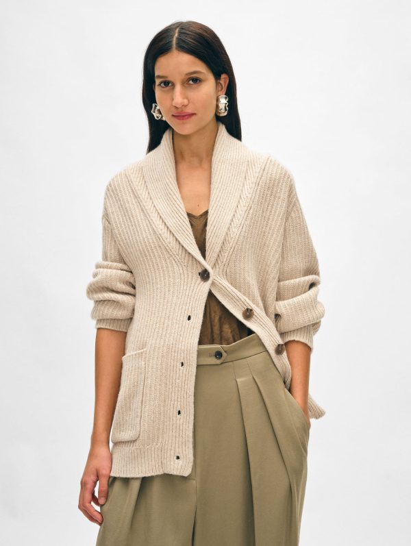 This heirloom-worthy coatigan is crafted from marled merino wool blended with cotton and cashmere for richness in color and warmth. A shawl collar and patch pockets round out the classic styling. Layer the oversized knit over a sweater or tank top, depending on the climate.