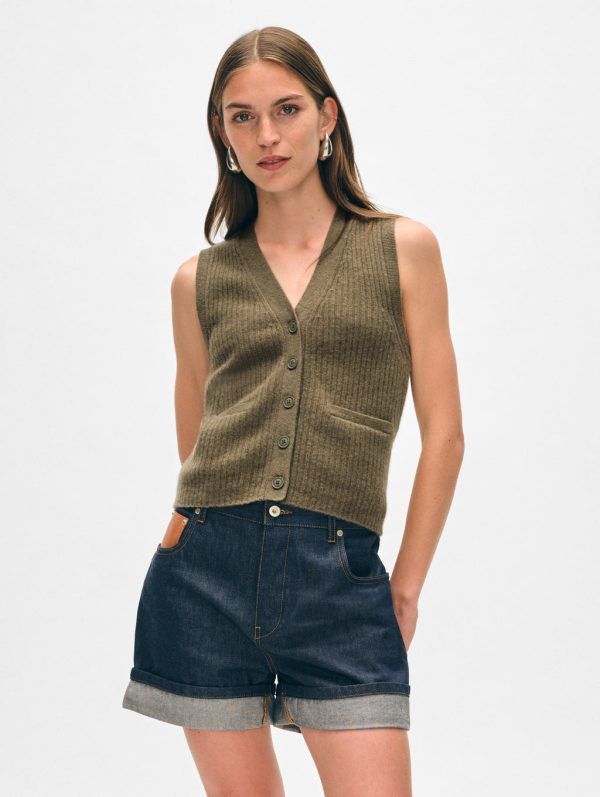 This vest is spun in our classic cashmere weight, so not only will it keep you looking polished, but it feels irresistibly soft too. The allover ribbed texture is offset by welt pockets and tonal buttons to match—a modern way to wear tailoring. We think it looks just as cool layered over your favorite blouse or styled alone with pants.