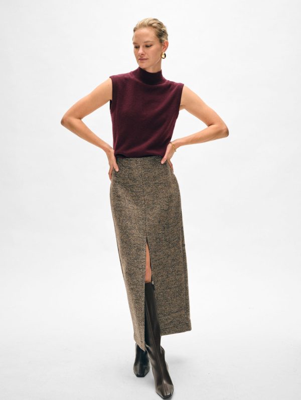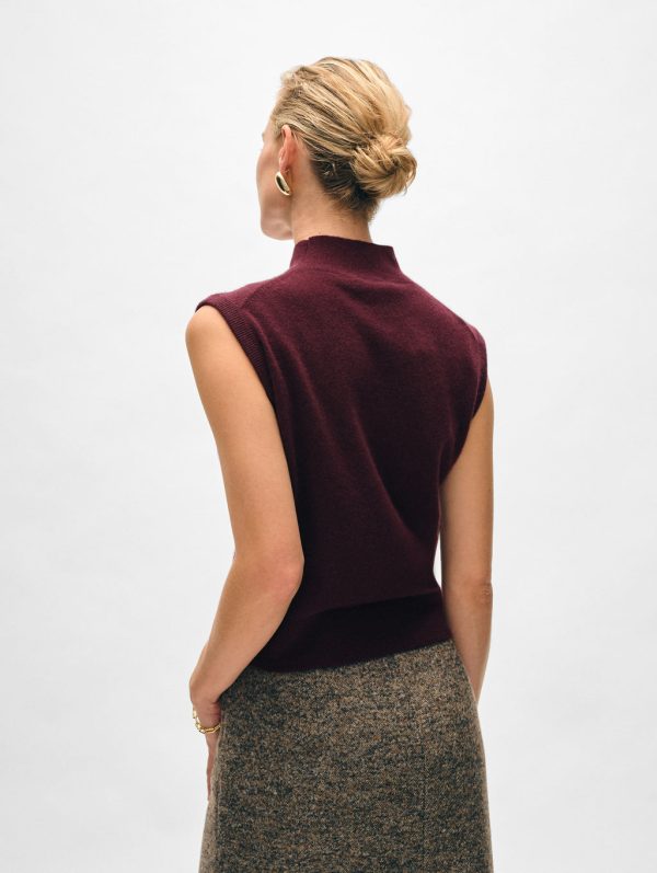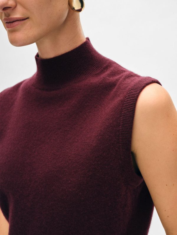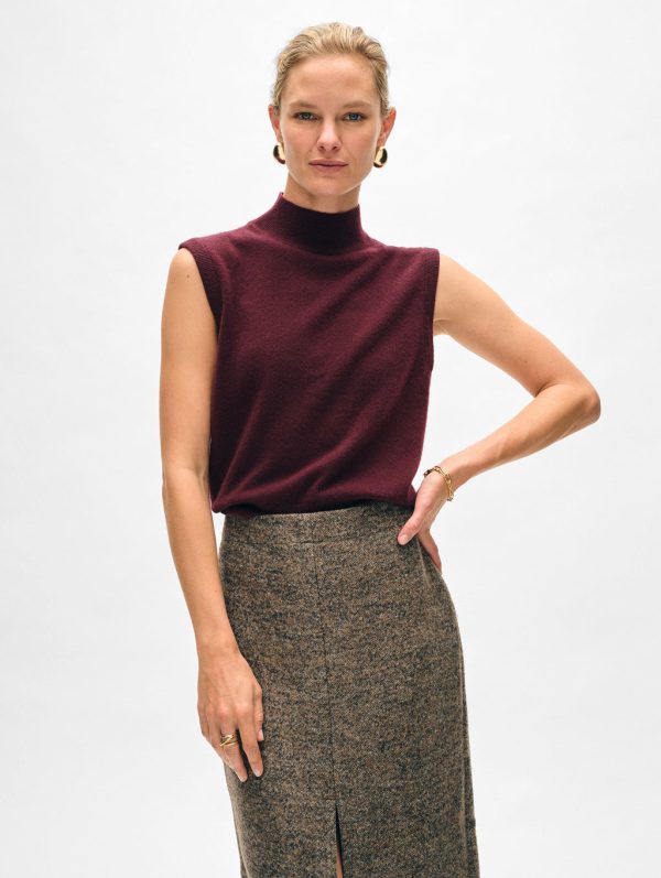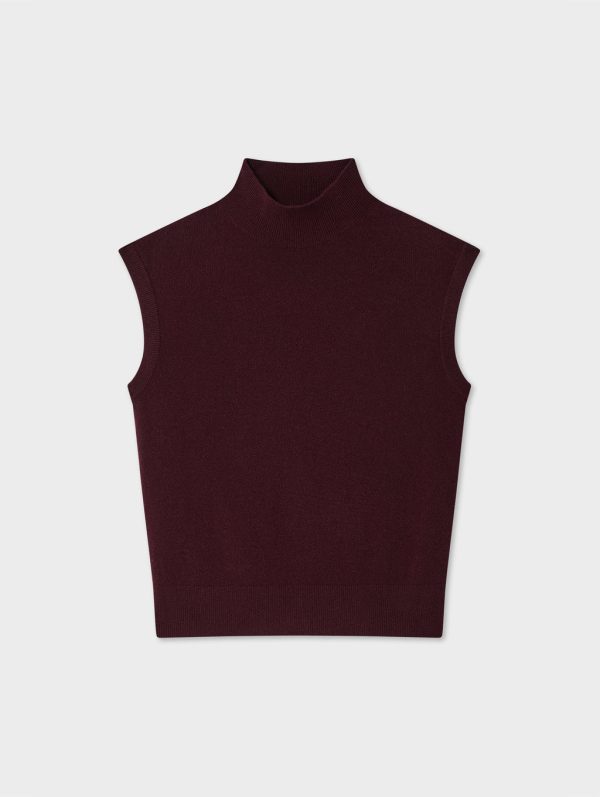 Make the transition from day to night with this cozy-chic mockneck. Crafted from responsibly sourced cashmere, this knit top combines the warmth of a sweater with the versatility of a sleeveless design. Hitting at the low hip with a straight fit, it can be effortlessly tucked into a high-waisted skirt for a polished look, or layered over jeans to showcase its stylish ribbed trim hem.